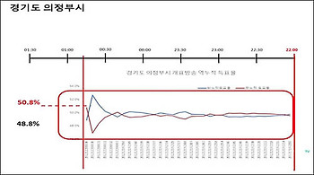 개표기계에는 시작되는 점과 끝나는 시점이 기록되는데 경기도 의정부시 녹양동 제4투표구의 경우 오후 10시 16분에 기계가 돌기 시작해 10시 38분에 개표가 종료됐다.