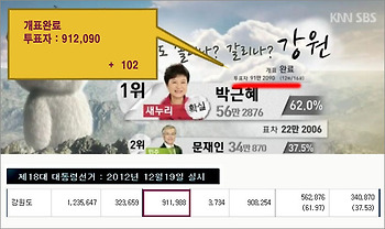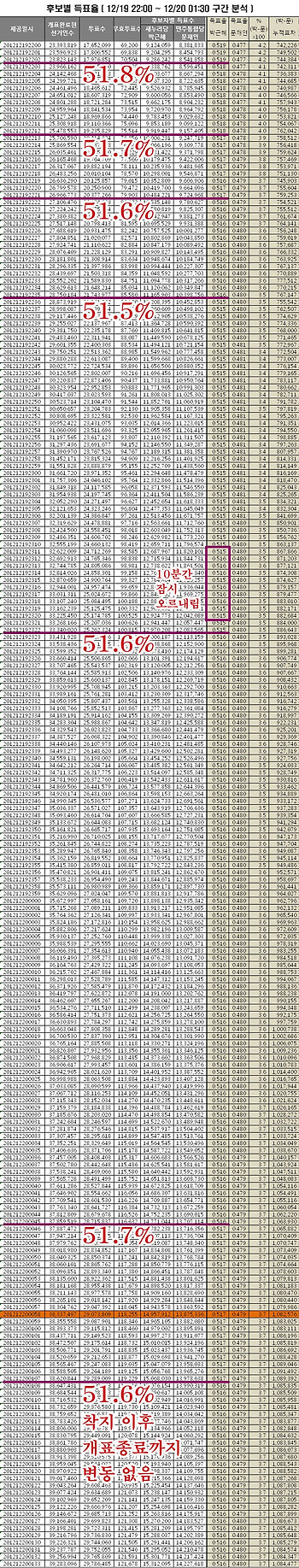 전국단위 선거에서 5~10%도 아니고 불과 3.6%의 차이가 난 선거에서 단 한 번의 역전도 없었다는 것은 지역별 개표순서와 배열의 절묘한 조율이 없이는 불가능하죠.