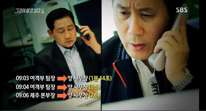 이 의문의 해답은 청와대와 해경본부와의 통화를 통해 추측할 수 있습니다. 첫 통화는 9시 14분 청와대에서 해경본부에 전화를 하는 것으로 시작됩니다.