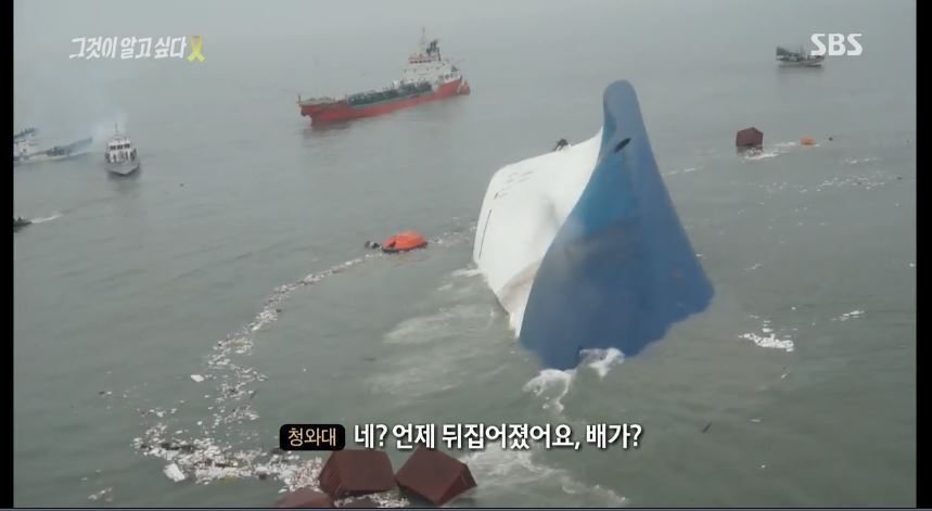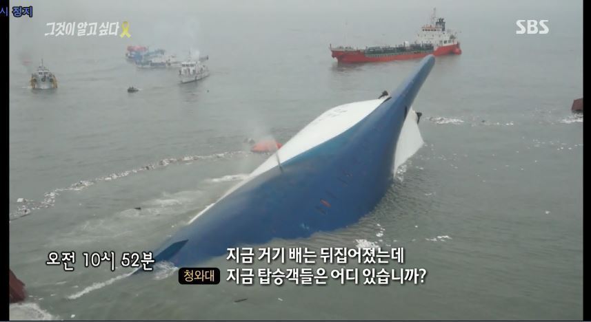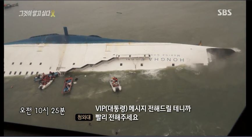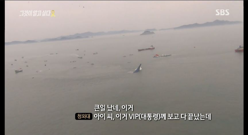 청와대에선 자꾸 현장 사진 인원수 영상을 요구했고 해경이 구조를 뒷전에 두고 청와대의 요구를 수행하는 시간에 배는 가라앉았다.