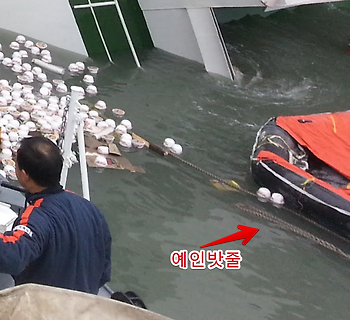 123정이 세월호를 끌어당긴두 개의 예인색(밧줄)