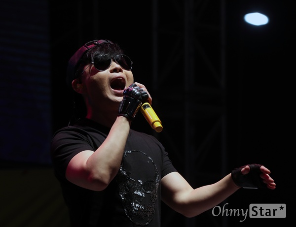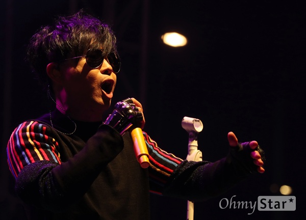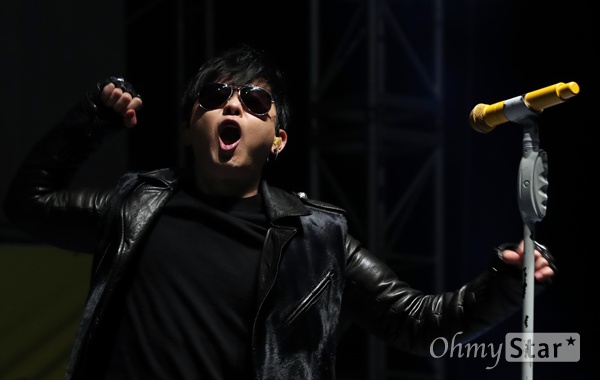 | ▲ 이승환 "하야하라 박근혜" 가수 이승환이 25일 오후 서울 광화문광장에서 열린 박근혜퇴진 광장촛불 콘서트 '물러나 SHOW'에서 공연을 선보이고 있다. 무대에 오른 그는 '덩크슛'의 가사 "주문을 외워보자. 야발라바히기야"를 "주문을 외워보자. 하야하라 박근혜"로 개사해 불러 시민들의 환호를 받았다. |