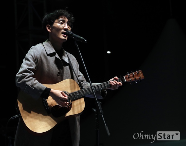 | ▲ 박근혜 퇴진 콘서트 무대 오른 권나무 가수 권나무가 25일 오후 서울 광화문광장에서 열린 박근혜퇴진 광장촛불 콘서트 '물러나 SHOW'에서 공연을 선보이고 있다. |