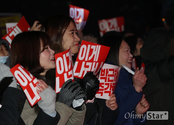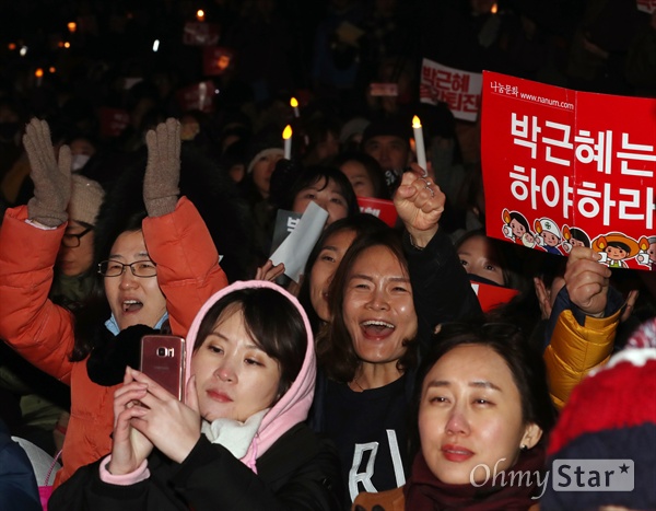 | ▲ 박근혜 퇴진 콘서트, 환호하는 시민들 가수 이승환이 25일 오후 서울 광화문광장에서 열린 박근혜퇴진 광장촛불 콘서트 '물러나 SHOW'에서 공연을 선보이자 시민들이 환호하고 있다. |