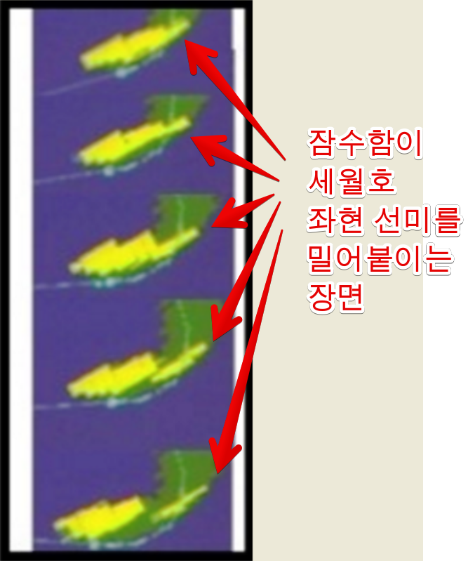 길이 100M 美 대륙간탄도 핵잠수함 이 세월호 선미 좌현 선저를 밀어붙이는 장면
