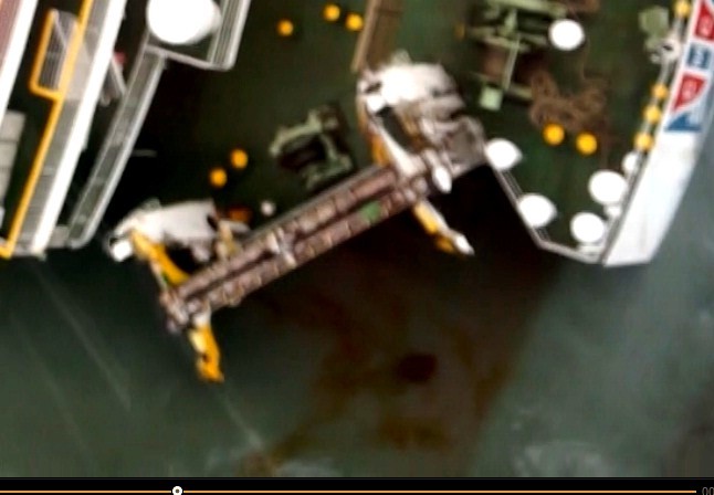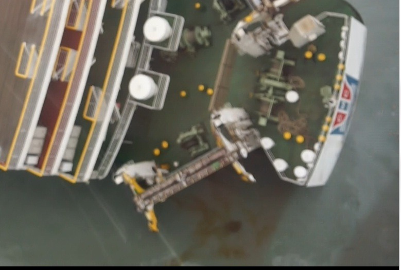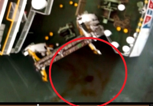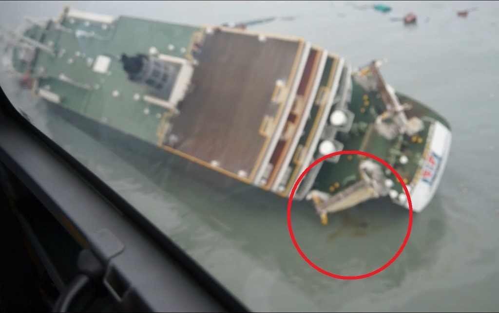 세월호 좌현 선미쪽에서 유압유가 흘러나오고 있는 중입니다.