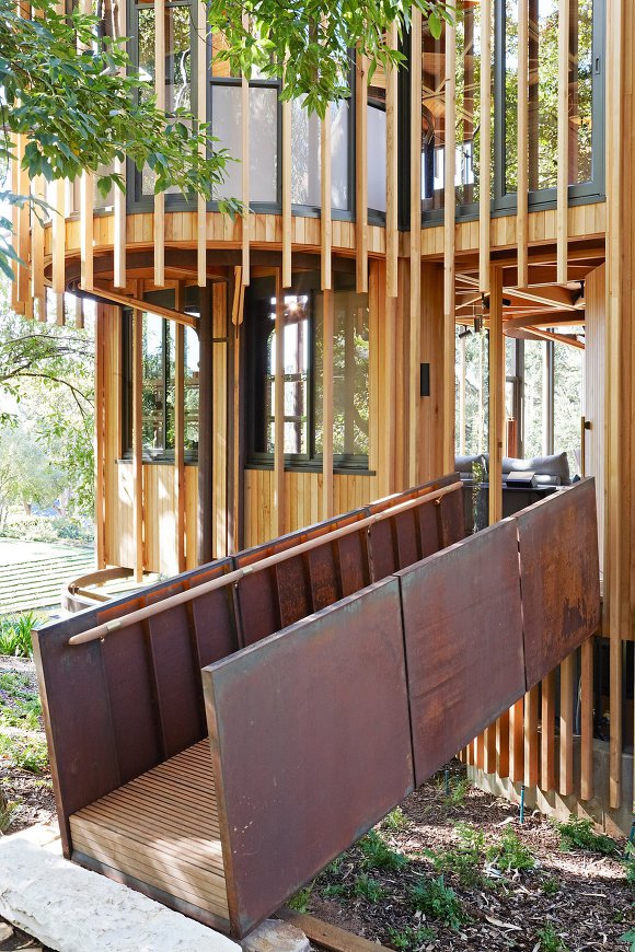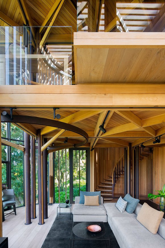 특히 다양한 각도에서 경치를 감상할 수 있도록 만들어진 이 주택은 집을 지탱하는 강철 구조물과 목재가 조화롭게 어우러져 외부와 내부 모든 공간에서 독특한 분위기를 연출한다.