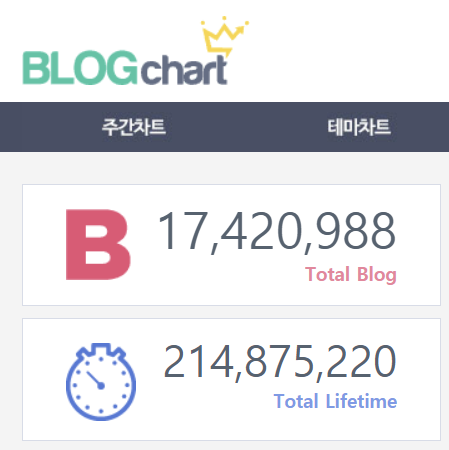 출처블로그차트 / 국내 블로그의 개수는 1700만 개를 넘는다.