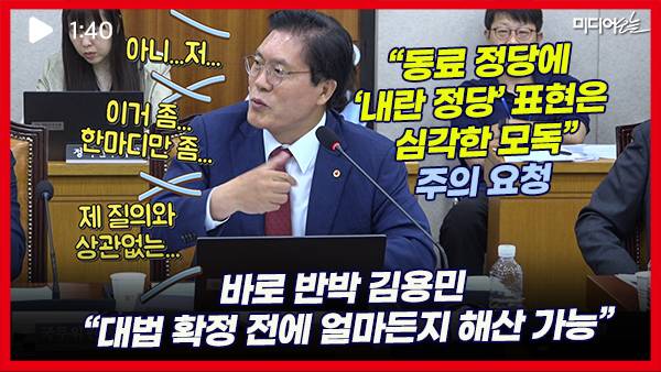 송석준 국민의힘 의원이 “동료 의원이나 동료 정당에 '내란 정당'이라는 표현을 쓰는 것은 심각한 모독”이라며, 이춘석 법사위원장에게 '내란 정당' 표현 주의를 달라고 요청했다. 반면 김용민 더불어민주당 법사위 간사는 즉각 “내란으로 유죄가 확정되지 않더라도 (정당) 해산은 얼마든지 가능하다”며 반박했다.