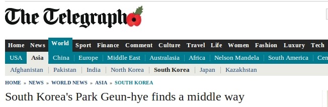 텔레그래프는 11월 4일 기사에서 '쿠테타로 정권을 잡은 1961년부터, 휘하 정보부장의 총에 맞아 만찬석 상에서 목숨을 잃은 1979년까지 철권으로 한국을 통치'했던 박정희의 딸로서 서울과 젊은 층들의 지지는 받지 못했으나 노년층들의 지지로 박근혜가 당선되었음을 언급했다. 그러나 이 과정에서 국가기관인 국정원의 선거개입으로 부정선거에 대한 논쟁이 지금껏 이어져오고 있음을 역시 보도했다. 이어서 이 기사는 박근혜가 대통령 선거 당시 재벌을 비판하고 복지지출 공약을 내거는 등 좌편향적 정책을 내세워 효과를 보았지만, 당선된 뒤로 다른 사람을 믿지 못하고 모든 사람을 스스로 선택하려는 탓에 내각 구성에 몇 주가 걸리기도 했으며, 선거공약이었던 기초노령연금을 단번에 철회하는 등의 결점을 집권초기에 이미 드러내 왔다고 꼬집었다.