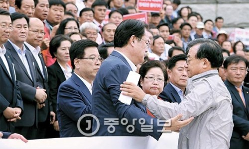 이런 와중에서 새누리당의 내분 소식도 들립니다. 국정감사, 국회의원들이 어쨌든 돋보일 수 있는 좋은 기회일거고, 이럴 때 튀어보려고 준비한 의원들도 많을 건데, 새누리당 지도부의 이른바 '친박 세력'들을 중심으로 국감을 보이코트하는 사태가 진행되고 있지요. 그림은 뻔한 겁니다. 국민의 민생보다도, 개별 자당 소속 국회의원들의 국감 준비도, 모두 필요없고 지금 제일 중요한 것은 최순실과 우병우를 감추는 것이란 걸 스스로 인정하는거지요.