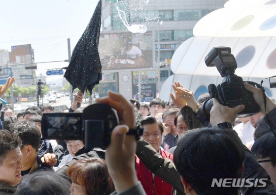 ◇황교안 "밀어달라" 호소했지만…물벼락 =황 대표를 비롯한 당 지도부는 이날 오전 광주 송정역에서 '문재인 STOP 광주시민이 심판합니다'를 내걸고 규탄대회를 열었다. 선거법 개편안 등의 패스트트랙 철회를 요구하며 전날 서울과 대전, 대구, 부산 등에서 규탄대회를 개최한데 이은 행보다. 황 대표가 호남을 방문한 것은 대표 취임 후 이번이 처음이다.